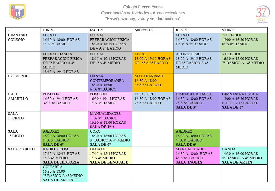 Horario Actividades Extracurriculares 2026